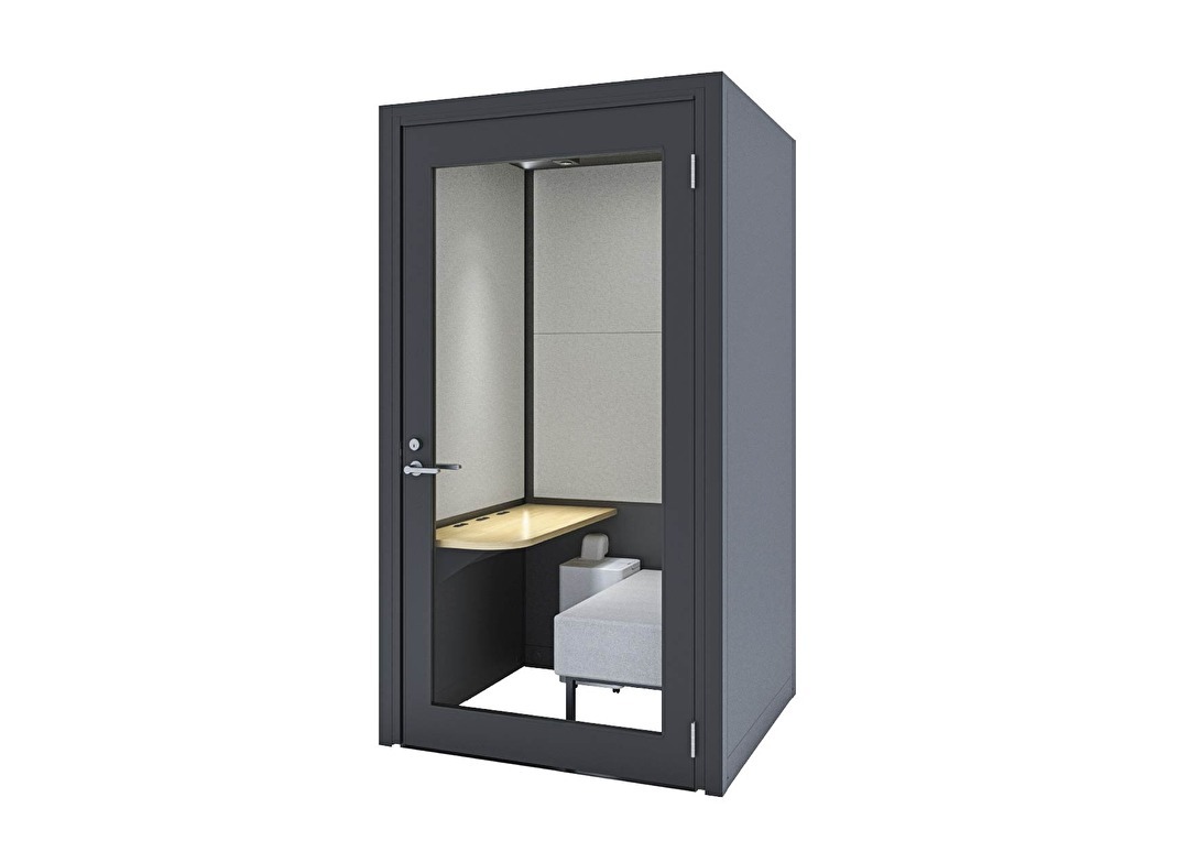 簡単に室内に設置できるブースは、エアコン付きで夏でも涼しく快適です。クローズ型なので、高い遮音性も備えています。
