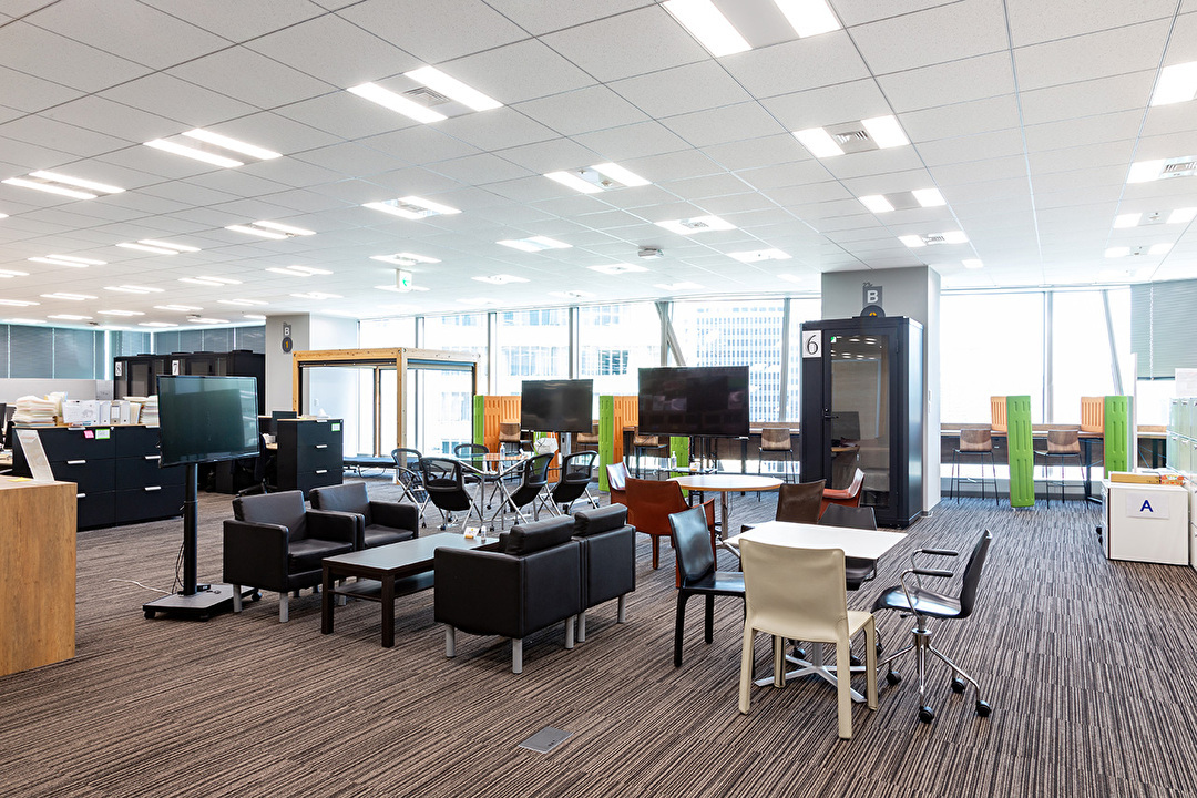 合同会社DMM.comでは、2021年から一部スペースでフリーアドレスを採用しています。その後、大幅な改装に合わせてフロアを縮小し、フリーアドレス席も減らしました。