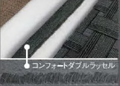 座面にはウェービングテープに加えコンフォートダブルラッセルを使用したトリプルクッション構造。へたりにくく底づき感のない快適な座り心地を実現しました。